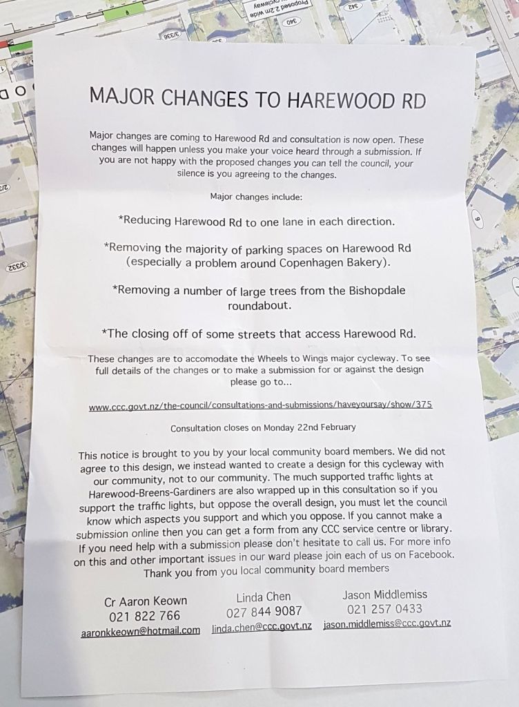 In early August I responded to a letter in the Press that claimed that an observed lack of cyclists along Harewood Road at present was proof that the project wasn’t needed. Nothing could be further from the truth. As my letter noted, “…the Wheels to Wings Papanui ki Waiwhetū cycleway, like all our major cycle routes, is designed to cater for the ‘Interested but Concerned’ – those who could make some trips by cycle if they felt safe enough, but who are not confident mixing with traffic. The current lack of cyclists spotted using Harewood Road to access the multiple schools, shops, and parks along the route is in fact proof that the project is needed. Assumptions are always made in planning infrastructure, and the long-term trend of increasing cycle usage across our developing cycleway network gives confidence to staff, elected members, and the public that a good decision has just been made. The major cycleway programme has never been about ‘meeting the market that exists’ but rather about the otherwise unmet need.” (Emphasis added.)